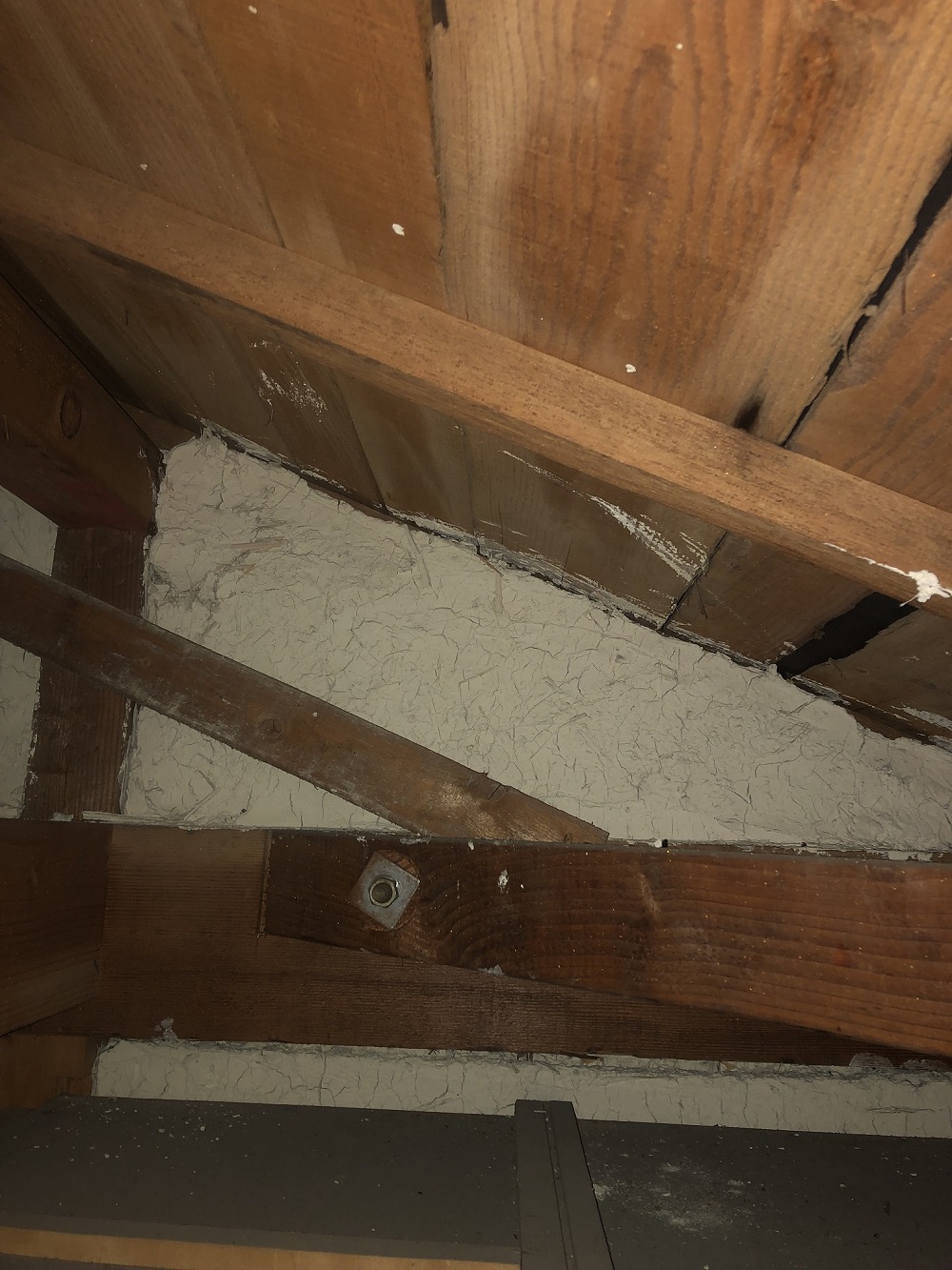 屋根の下地が無垢の野地板。これは半永久的に痛まないからOK。