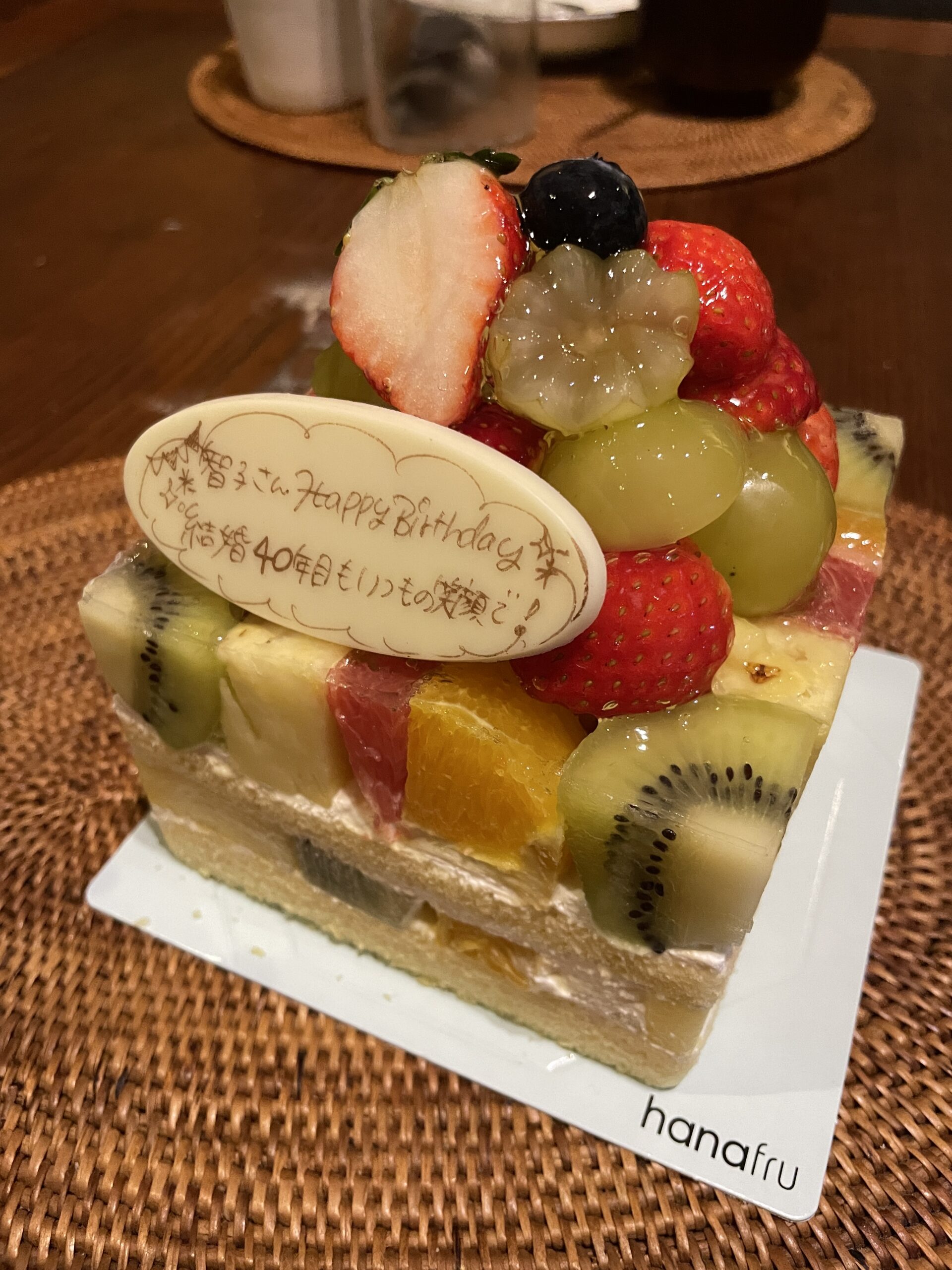 毎年の定番にしているハナフルのフルーツケーキ。たくさんの種類があったけど、値段が一番高いものを買うと決めているので迷いなくこれを(笑)