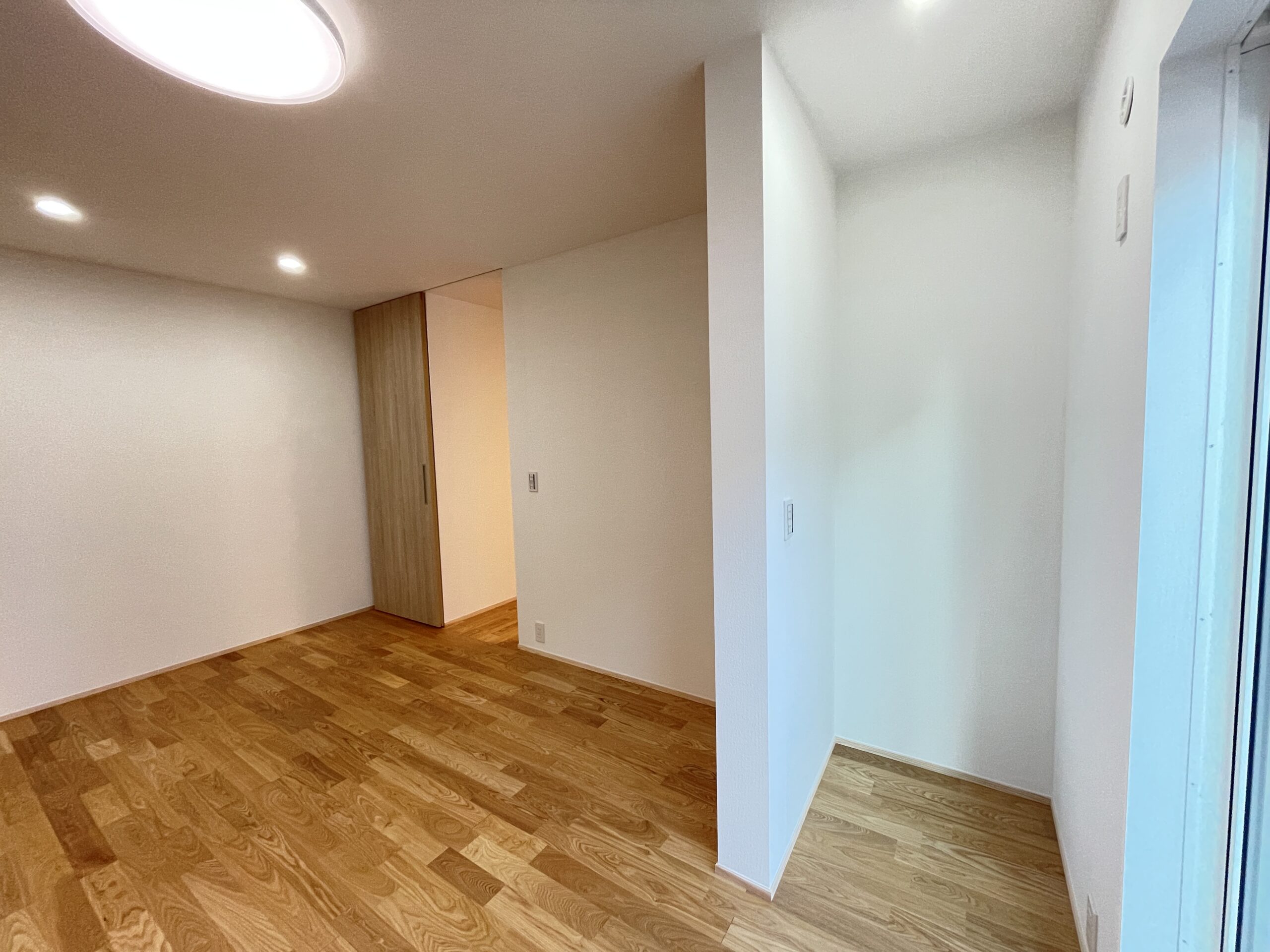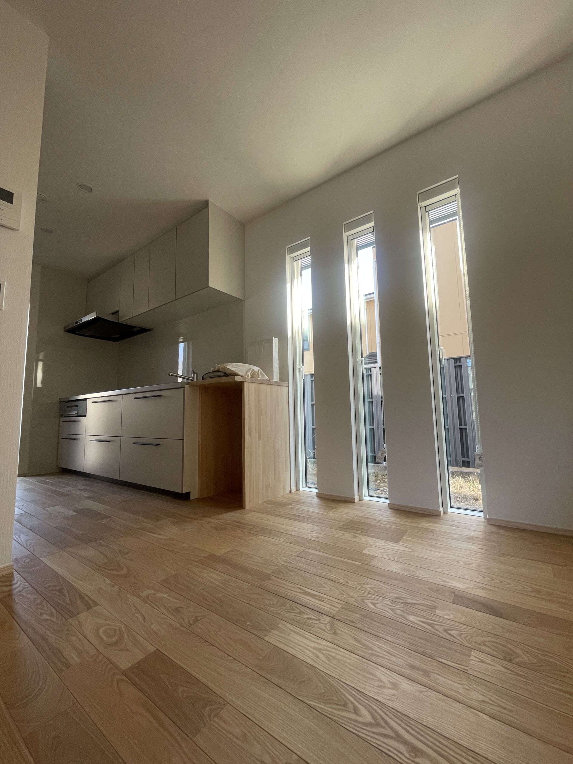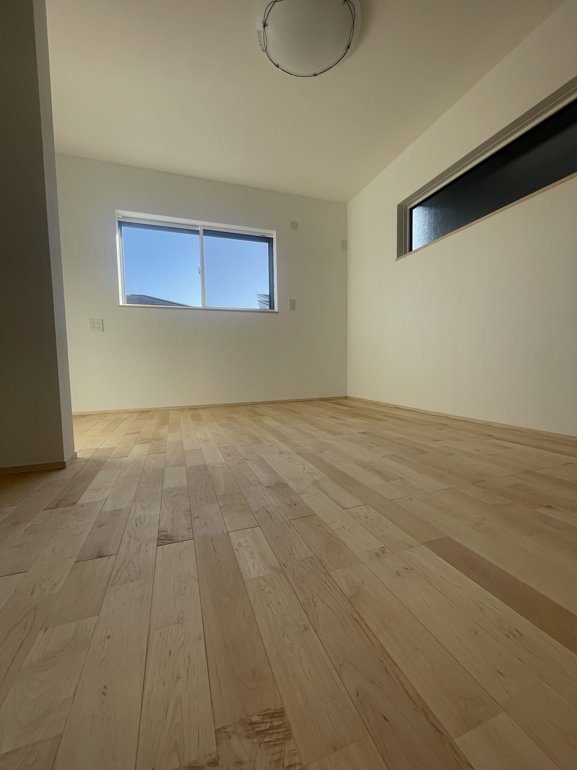 子供さんの部屋の床は楓材。メープルです。タモよりぐいっと高いですぞ(笑)高所横辷出し窓も通風を考慮してのもの。