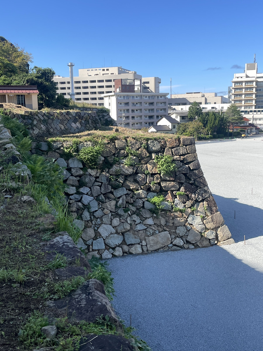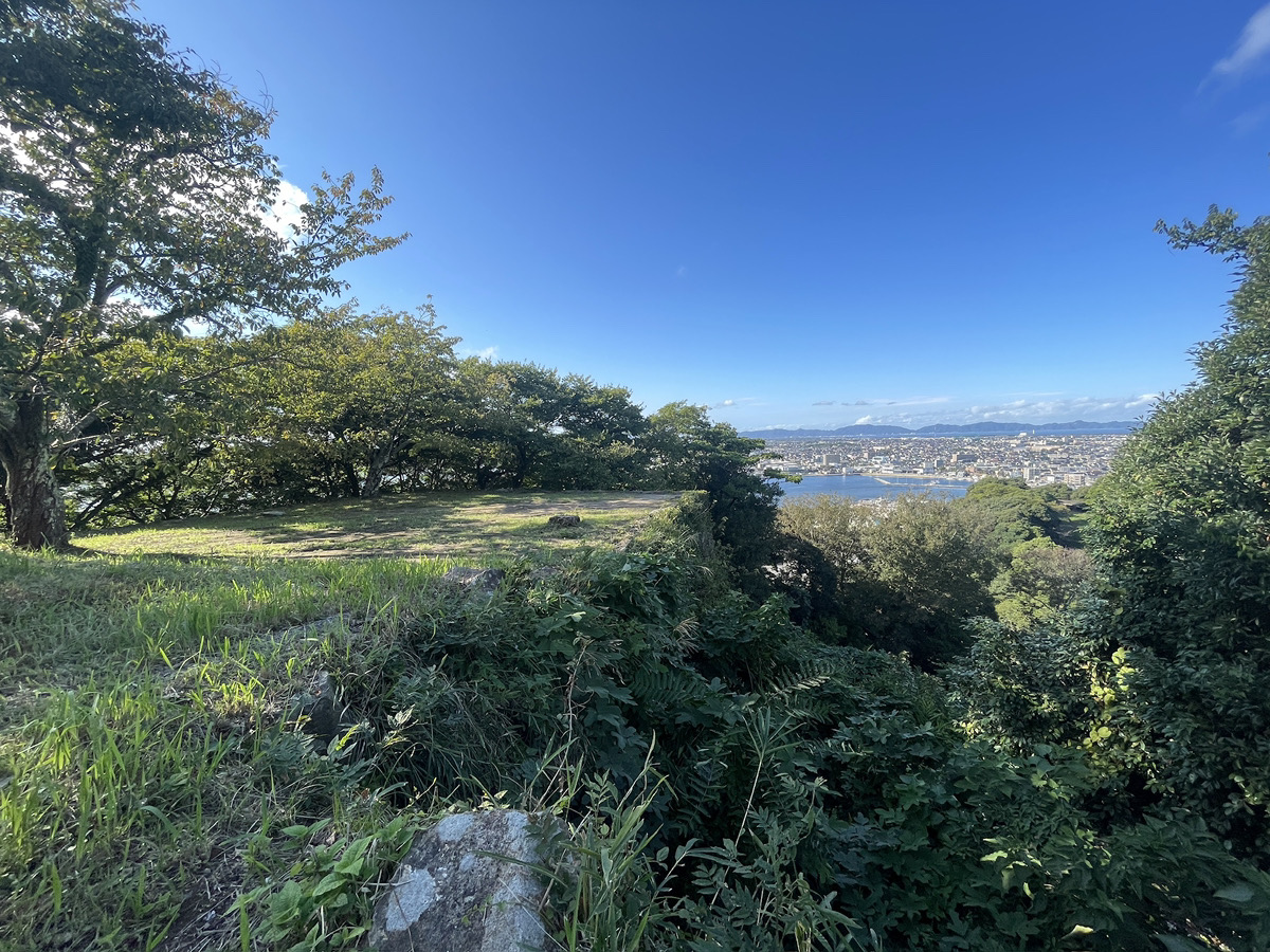 丸山に築かれた郭で、城下町に細長くはりだしています。この郭から本丸に向けて登り石垣を築き、米子城の中海側の防衛線が設けられていました。