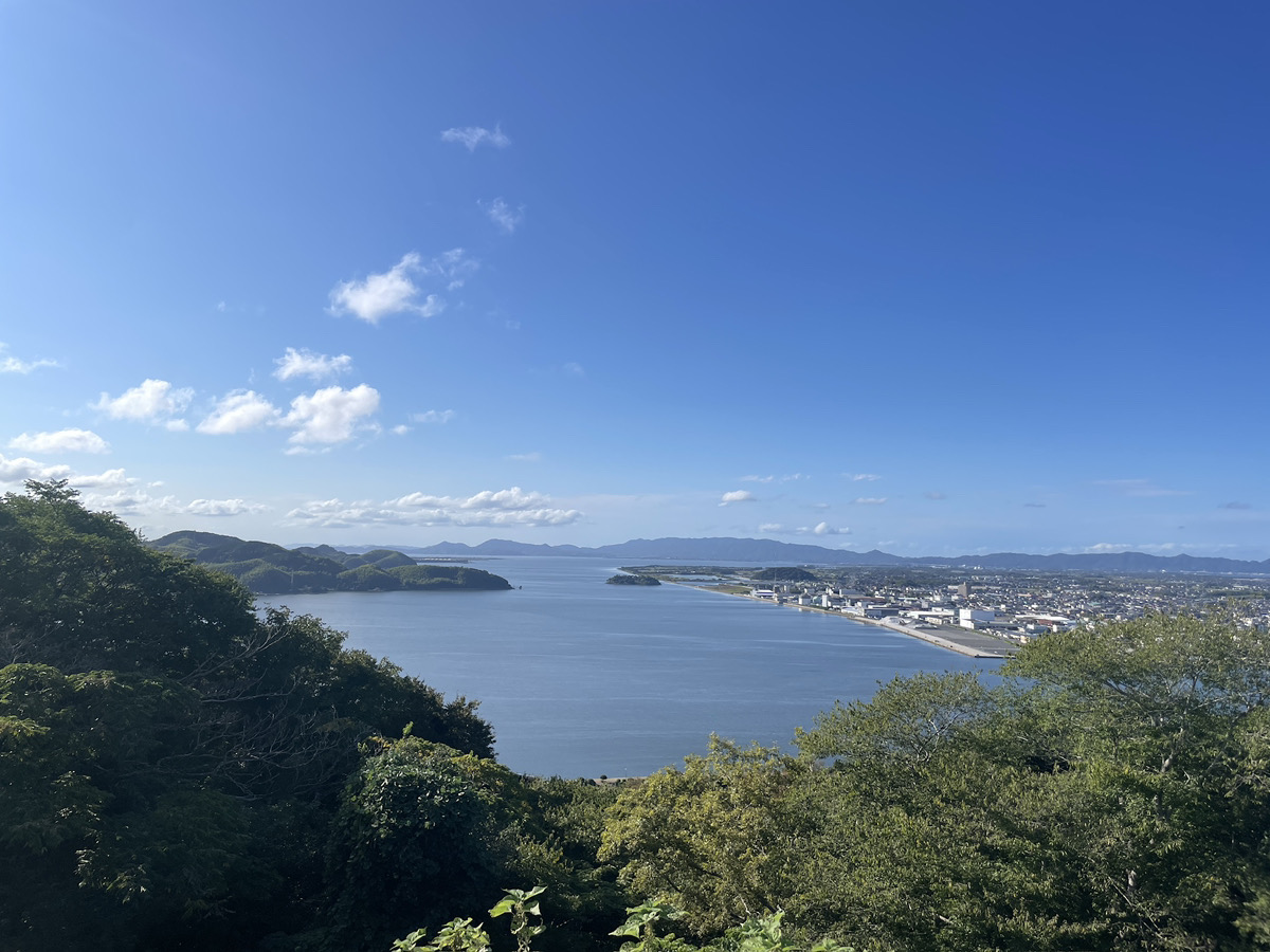 内膳丸からの眺望。中海。入り組んだ入江の奥にあるのが米子。
