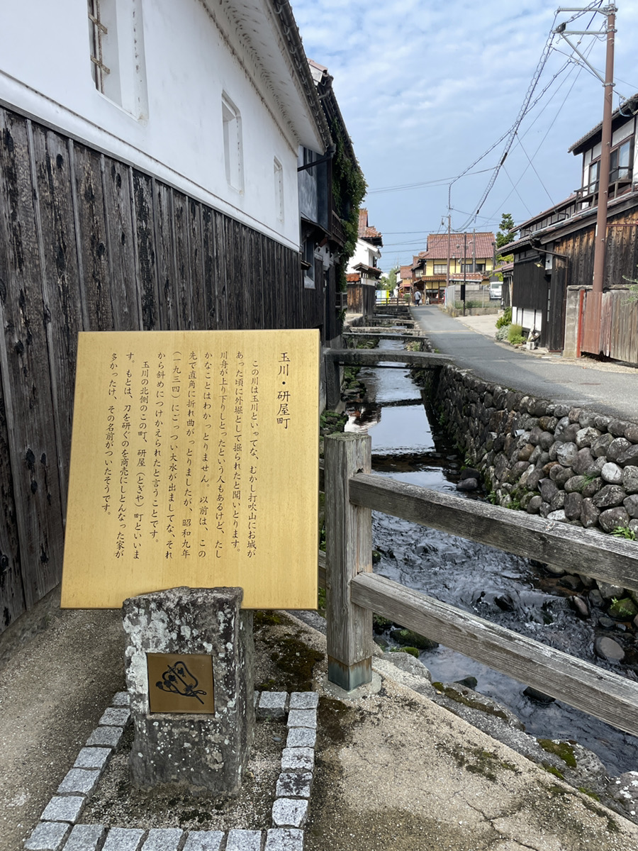 土蔵の横には用水が流れており、当時は生活用水だったと思います。すべての土蔵に石橋が掛けられており、風情たっぷり。