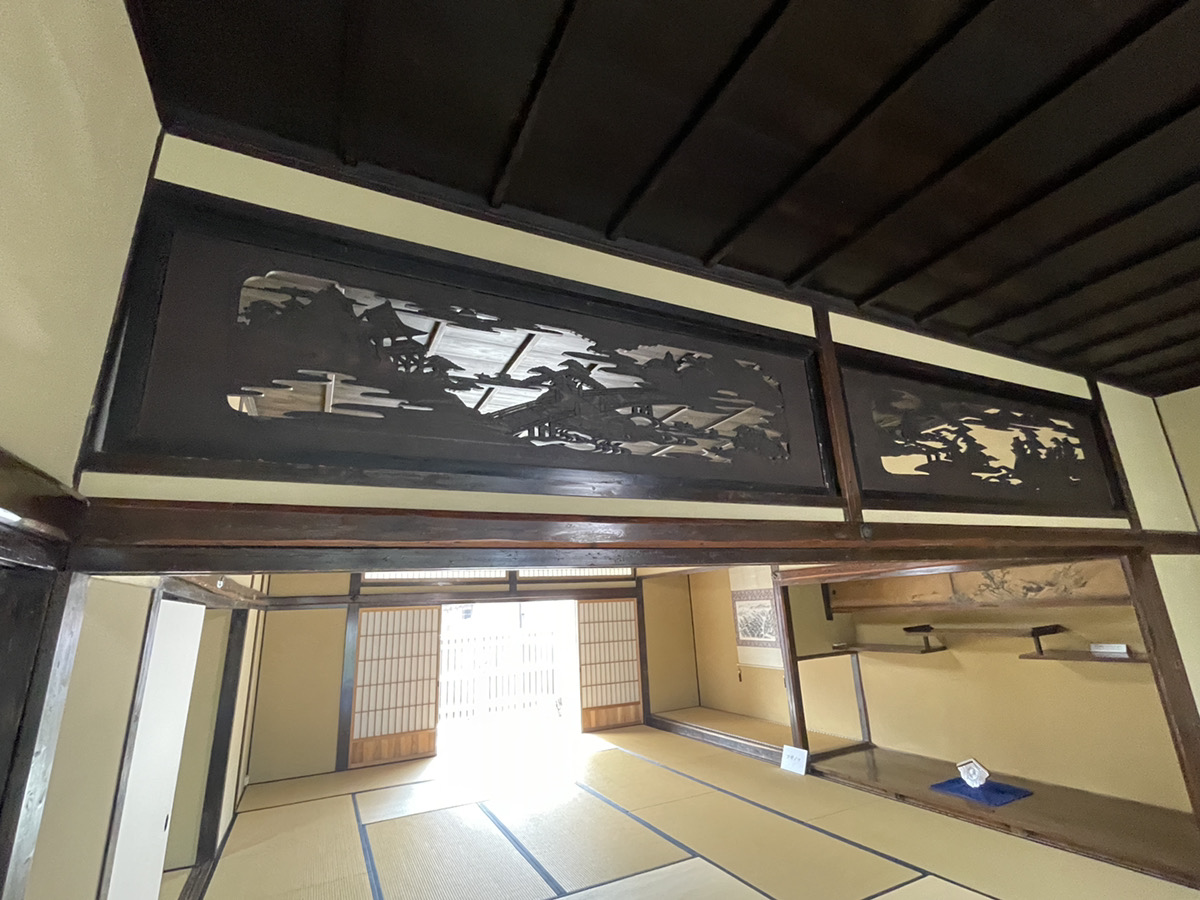 次に入ったところは旧商家の豪邸。長押に三ツ割材を使っている。塗ってあるのは漆だと思う。