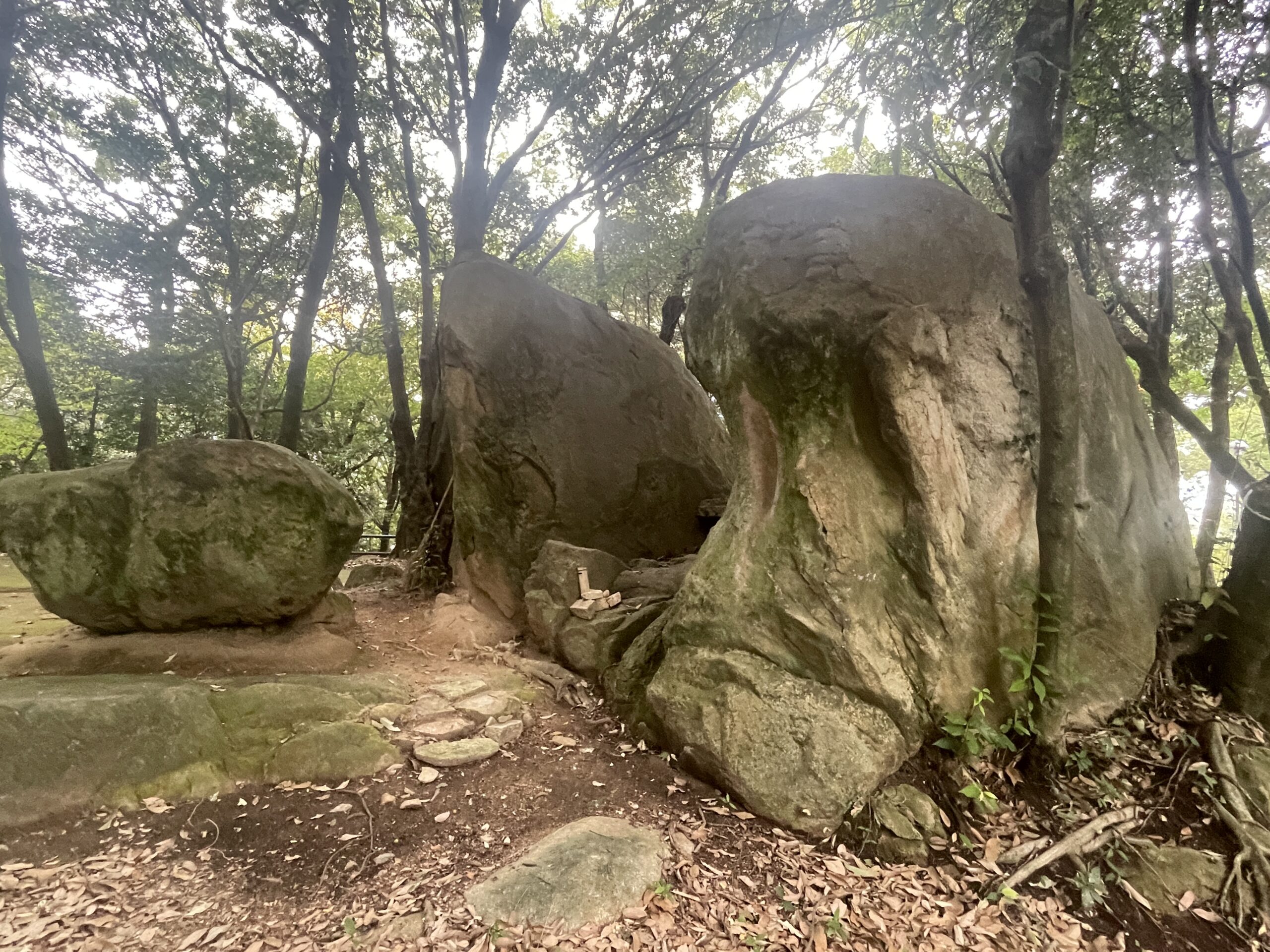 砦は小高い山になっており、奥まで入っていくと・・・こんな巨石も発見。
