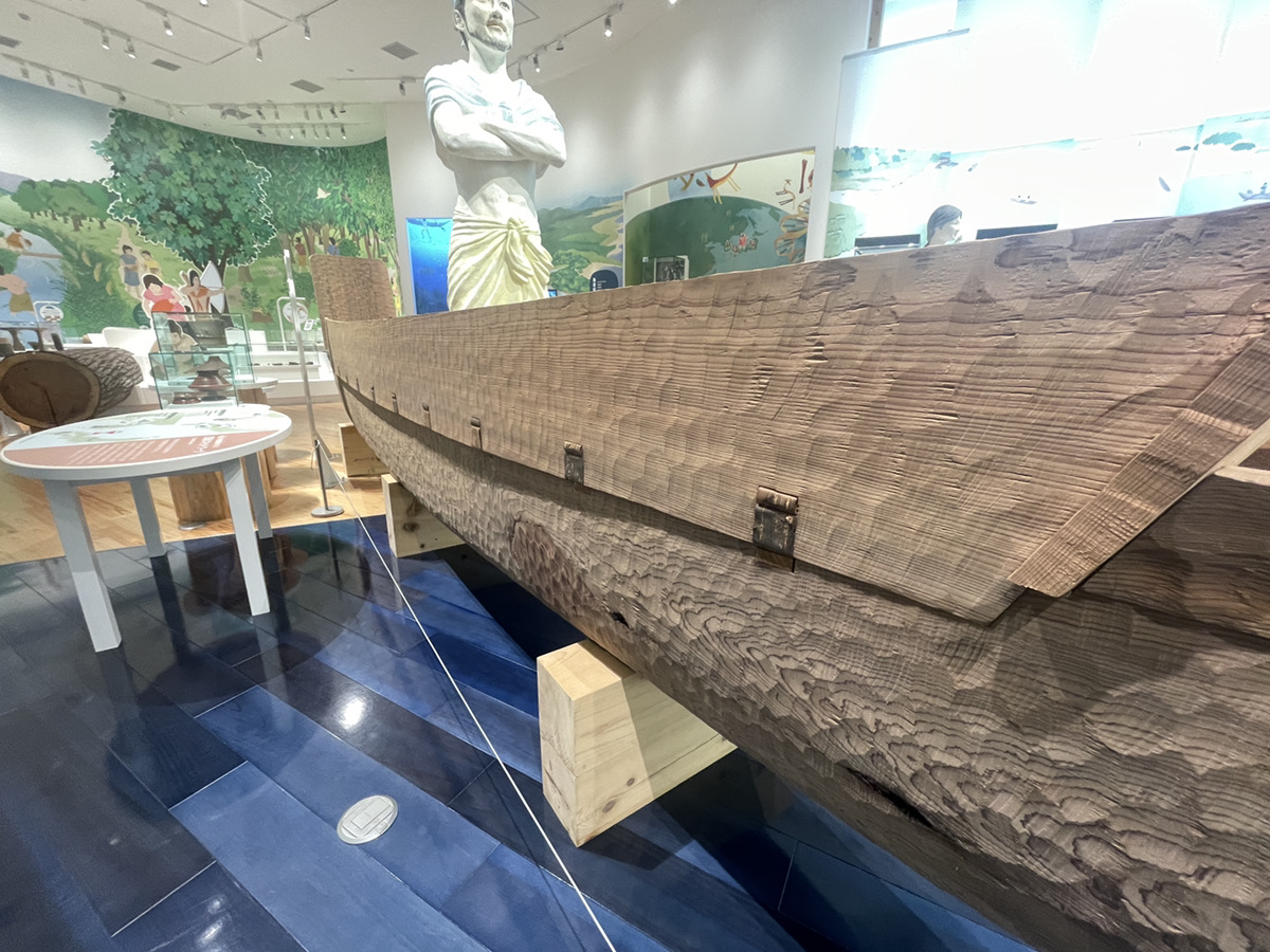 無料で見れるガイダンス棟だけでも価値がある。丸太からくり抜いた当時の交易船。
