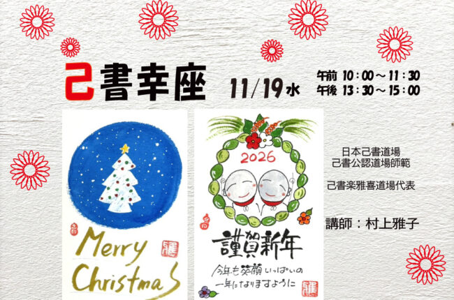 己書幸座己書とは?心のままに描く、己(おのれ)の書。読んで字のごとく、自分の書。まさにオンリーワンの書、それが己書です。「文字は上手に描けない」「絵も苦手」という方も、ちょっ