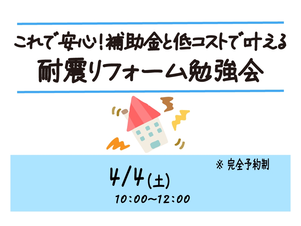 seminar| 4/4 これで安心!補助金と低コストで叶える 耐震リフォーム勉強会
