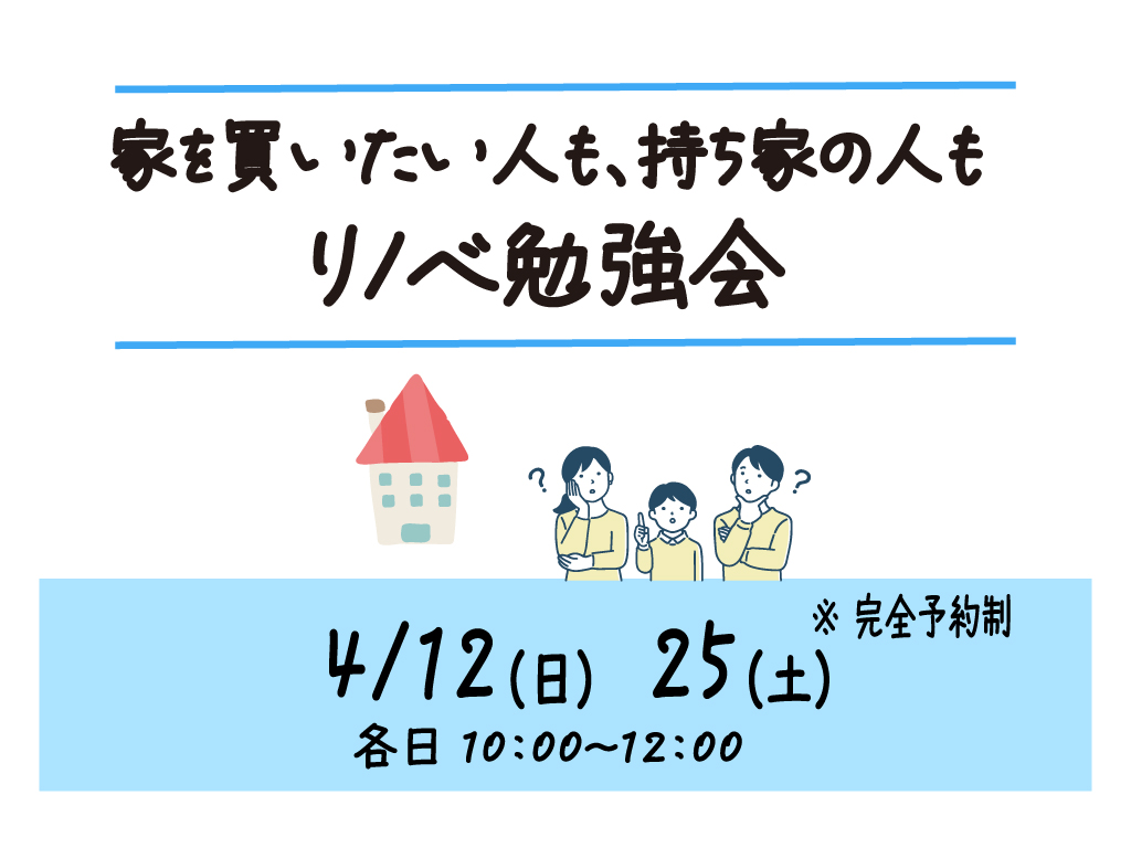 seminar| 4/12、25 家を買いたい人も、持ち家の人も リノベ勉強会
