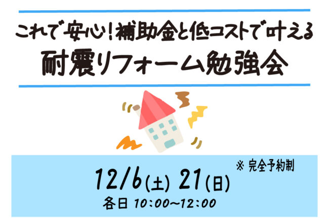 低コスト耐震補強勉強会名古屋市無料耐震診断を受けた方で、耐震補強のコストが思ったよりも高くあきらめてしまう方がたくさんいらっしゃいます。建て替えるほどではないとお感じの方